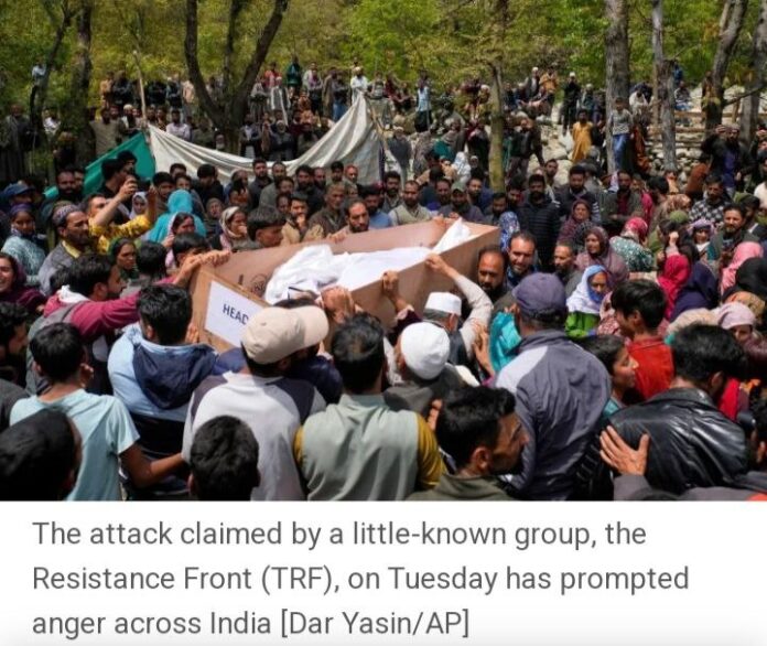 ကက်ရှ်မီးယားဒေသ ကမ္ဘာလှည့်ခရီးသွားမြို့ ပါဟယ်လ်ဂမ်တွင် ေ-သနတ်သမားများက လူ ၂၆ ဦးကို ပစ်ခတ်သတ်ဖြတ်ခဲ့သည့်ဖြစ်စဉ်ပေါ်ပေါက်ခဲ့သဖြင့် အိန္ဒိယအစိုးရက ပါကစ္စတန်နှင့် ၎င်း၏ ဆက်ဆံရေးကို အဆင့်နှိမ့်ချမည့် အစီအမံတစ်ရပ်အား ကြေညာလိုက်သည်။