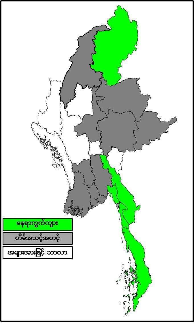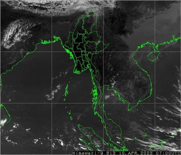 မနက်ဖြန် ဧပြီလ (၁၁) ရက်အထိ မိုးရွာသွန်းနိုင်မှု အခြေအနေများမှာ တနင်္သာရီတိုင်းဒေသကြီး၊ ကချင်ပြည်နယ်၊ ကရင်ပြည်နယ်နှင့် မွန်ပြည်နယ်တို့တွင် နေရာကွက်ကျား မိုးထစ်ချုန်း ရွာနိုင်ပြီး နေပြည်တော်၊ စစ်ကိုင်းတိုင်းဒေသကြီးအောက်ပိုင်း၊ မကွေးတိုင်းဒေသကြီး၊ ချင်းပြည်နယ်၊ ရခိုင်ပြည်နယ် နှင့် ကယားပြည်နယ်တို့တွင် အများအားဖြင့် သာယာပြီး၊ ကျန်တိုင်းဒေသကြီးနှင့် ပြည်နယ်တို့တွင် တိမ်အသင့်အတင့် ဖြစ်ထွန်းမည်ဖြစ်ကြောင်း သိရသည်။