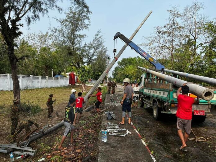 ရခိုင်ပြည်နယ်၊ ကျောက်ဖြူမြို့နယ်အတွင်း၌ “မိုခါ”ဆိုင်ကလုန်းမုန်တိုင်း တိုက်ခတ်မှုကြောင့် လျှပ်စစ်ဓာတ်အားလိုင်းကြိုးများနှင့် လျှပ်စစ်ဓာတ်အားလိုင်းတိုင်များ ပျက်စီးမှုများဖြစ်ပွားခဲ့သည်ဟု ESE ကျောက်ဖြူမှ သိရသည် ။