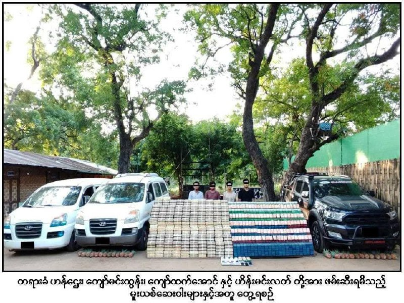 ထိုသို့ စစ်ဆေးရာ ကား(၂)စီးပေါ်မှ စိတ်ကြွဆေးပြား(၅ ဒသမ ၂၅)သန်းနှင့် ဘိန်းဖြူ(၂၂)ကီလိုတို့ကိုဖမ်းဆီးရမိခဲ့ပြီး စစ်ဆေးချက်များအရ မူးယစ်ဆေးဝါးများကိုသယ်ဆောင်ခိုင်းသူ ဟိန်းမင်းလတ်အား ဇူလိုင် ၈ ရက်နံနက် ၈ နာရီခန့်တွင် ကျောက်ဆည်မြို့၌ ဖမ်းဆီးရမိခဲ့ကြောင်း သိရသည်။