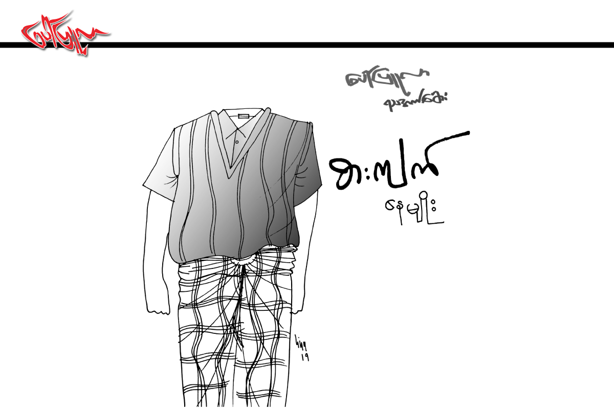 နာရီစင္က ေဆာင္းေလ အေသြးဖ်ပ္ကနဲ ဖ်ပ္ကနဲ လန္႔သြား တဲ့စာအုပ္ေတြကို ဖတ္လို႔။ အေဟာင္း ဆုိင္က ၃၅ က်ပ္နဲ႔ ဝယ္ထားတဲ့ ဆြယ္တာ ပြပြႀကီးကို ငါကဝတ္လို႔။ အဲဒီ ဆြယ္ တာဟာ လူေသတစ္ေယာက္ဝတ္ခဲ့တာ။ ကေဖးဆုိင္မွာ ကရား အိုးႀကီးေတြ ဆူပြက္လို႔ အိုးဗစ္ကေျပာတယ္၊ တုိ႔ႏွစ္ေယာက္ဟာ လူအုပ္ႀကီးျဖစ္တယ္တဲ့။ ကတၱရာ လမ္းနက္ေမွာင္ေမွာင္ေပၚမွာ ငါ ေလွ်ာက္ရင္း အိမ္ကိုျပန္လာ။