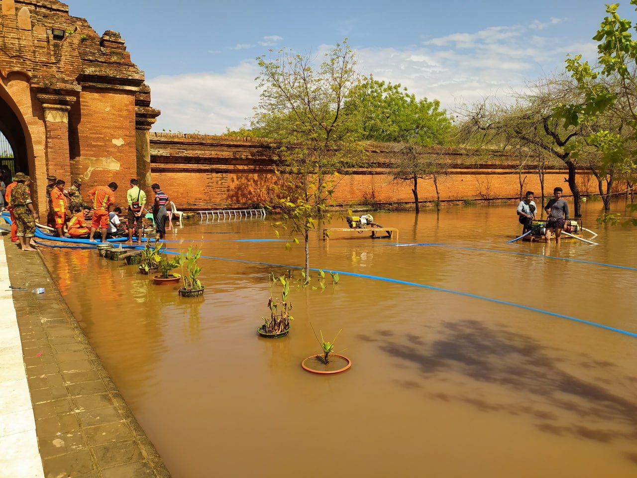 မိုးရေဝင်ရောက်မှုသည် ၁ ပေခန့်ရှိ၍ စူဠာမဏိဘုရားကြီးအတွင်း ဝင်ရောက်နေသည့်မိုးရေများအား ညောင်ဦးမြို့နယ်စီမံအုပ်ချုပ်ရေးအဖွဲ့ ဥက္ကဋ္ဌ ၊သဘာဝဘေးအန္တရာယ်ဆိုင်ရာကာကွယ်တားဆီးရေးအဖွဲ့ဝင်များ၊ခရိုင်/မြို့နယ်မီးသတ်တပ်ဖွဲ့ဝင်များ၊ခရိုင်/မြို့နယ်ဌာနဆိုင်ရာများ၊လုံခြုံရေးအဖွဲ့ဝင်များက ရေစုပ်စက်များဖြင့်စုပ်ထုတ်လျက်ရှိကြောင်း သိရသည်။