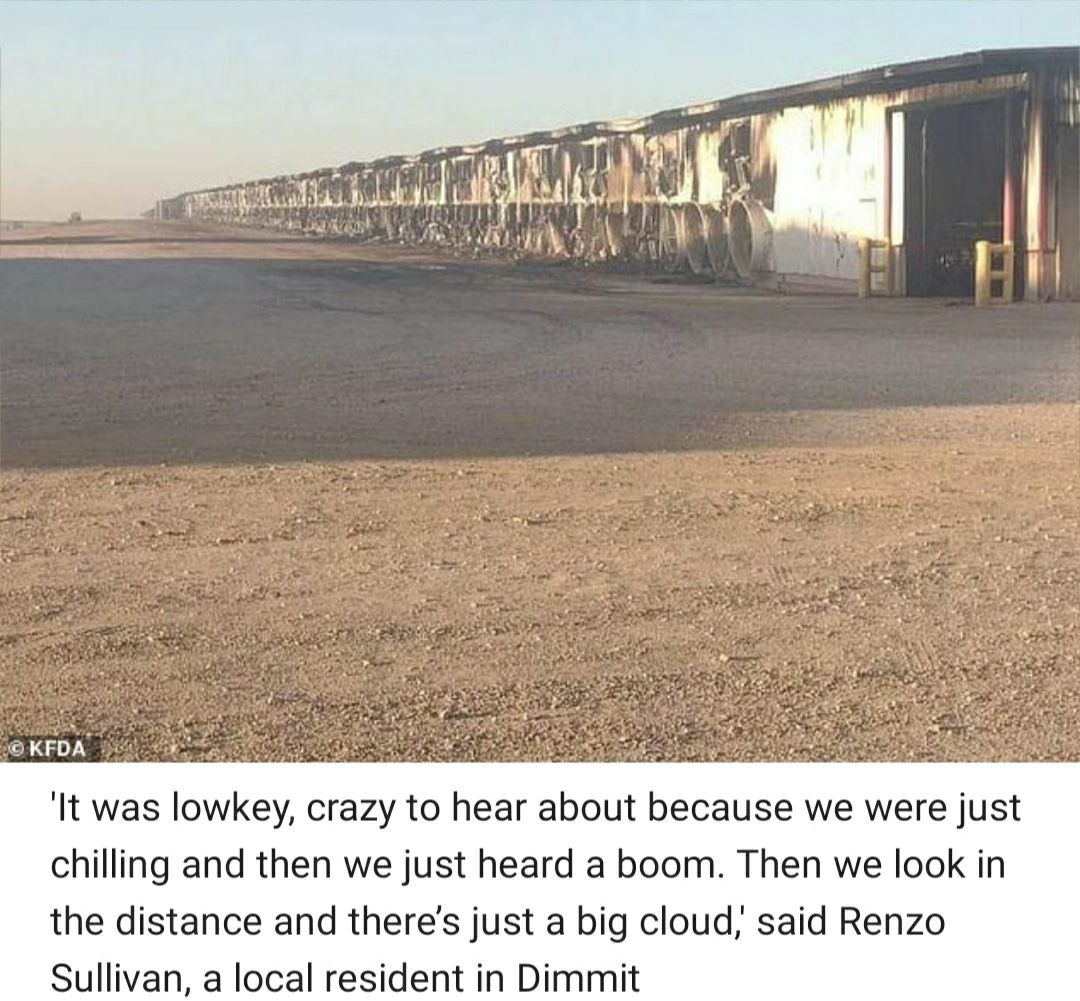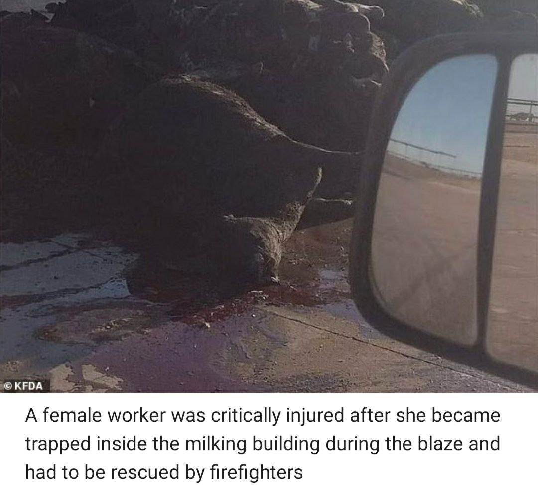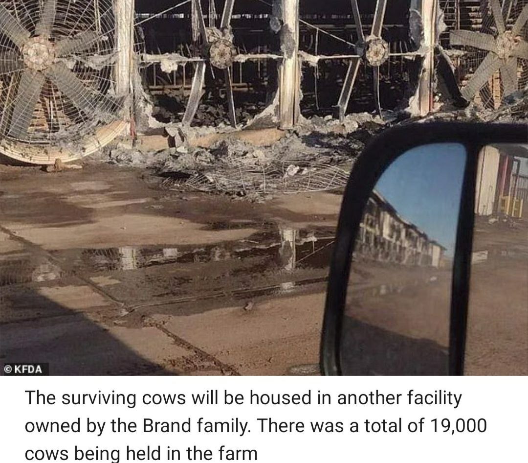 တက္ကဆပ်စ်ပြည်နယ် ပန်ဟန်းဒဲလ်မြို့ရှိ နို့စား နွား မွေးမြူရေးခြံတစ်ခု၌ ပြင်းထန်သောပေါက်ကွဲမှုဖြစ်ပေါ်ခဲ့သဖြင့် နွား ၁၈,၀၀၀ ကျော်သေဆုံးကာ ဝန်ထမ်းတစ်ဦး ဒဏ်ရာပြင်းထန်စွာရရှိခဲ့ပြီးနွားအသေအပျောက်အများဆုံးမီးလောင်မှုအဖြစ်မှတ်တမ်းတင်ခဲ့ရသည်ဟုဆိုသည်။
