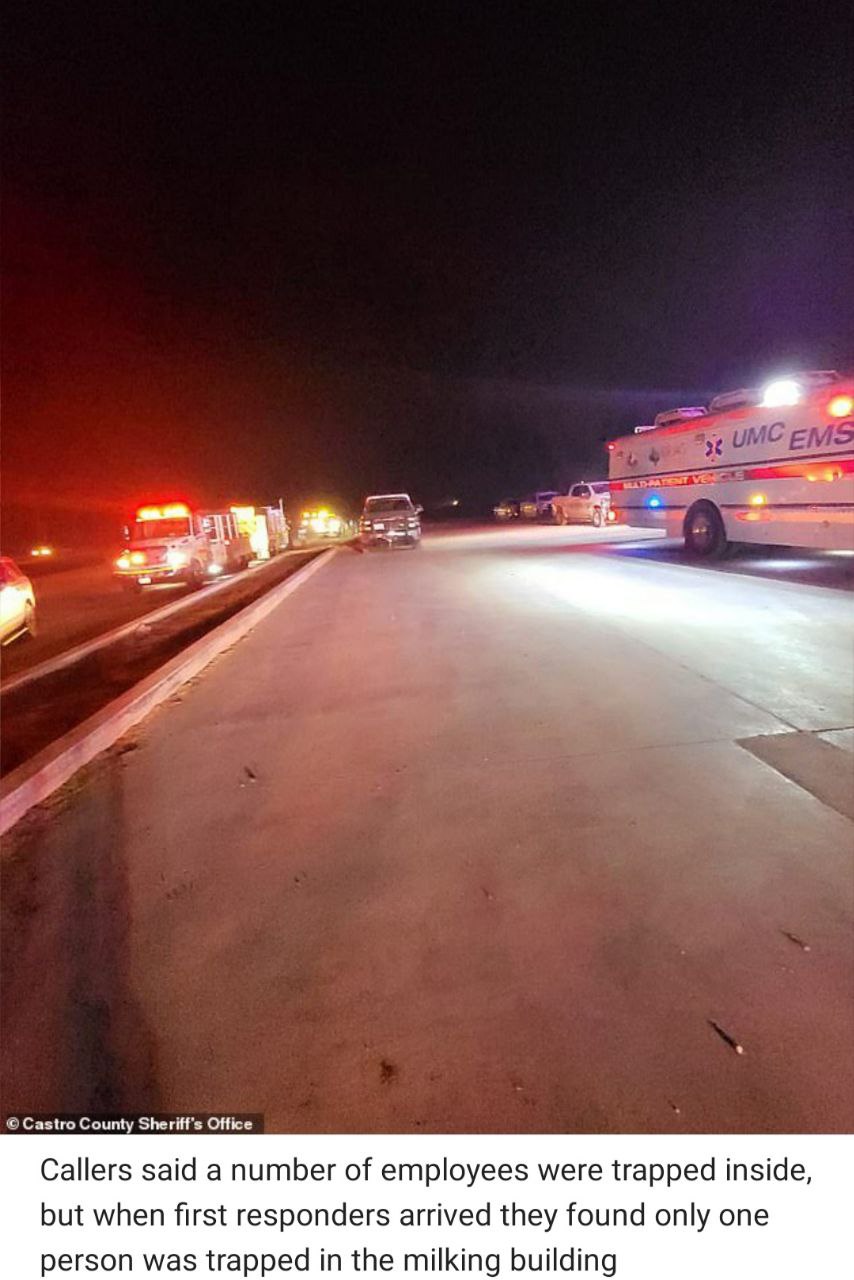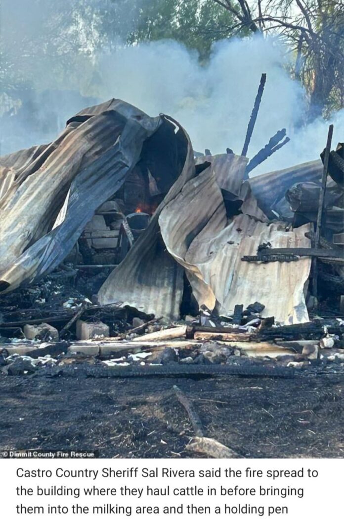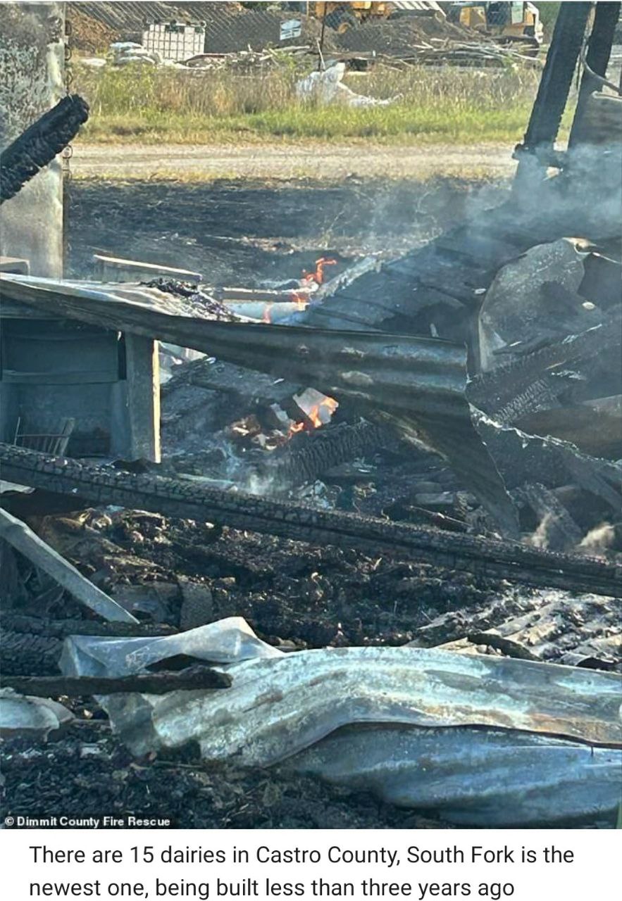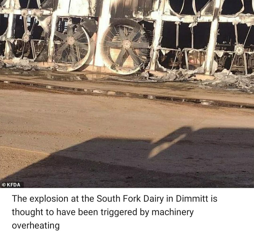 ဒင်းမစ်ထ်ဒေသရှိ Southfork နို့ခြံ၌ တနင်္လာနေ့ညကနွားများအားနို့ညှစ်ရန်ပြင်ဆင်နေစဉ် ပေါက်ကွဲမှုဖြစ်ကာ မွေးမြူရေးခြံတစ်လျှောက် မီးကူးစက်လောင်ကျွမ်းခဲ့ခြင်းဖြစ်သည်ဟု တာဝန်ရှိသူများကပြောကြားခဲ့သည်။