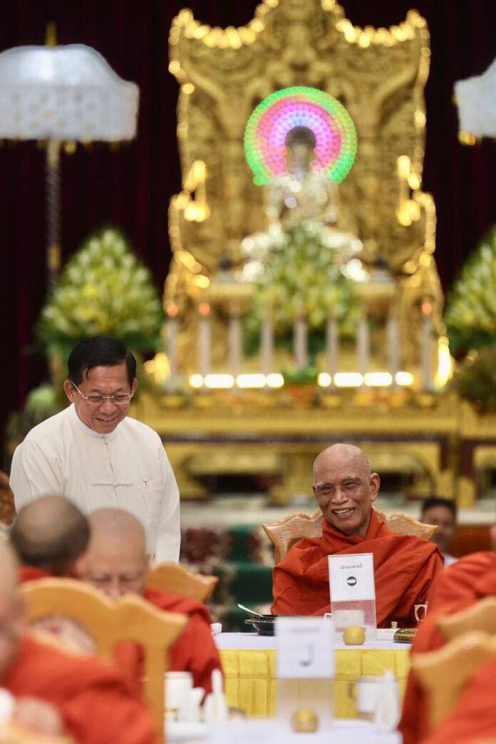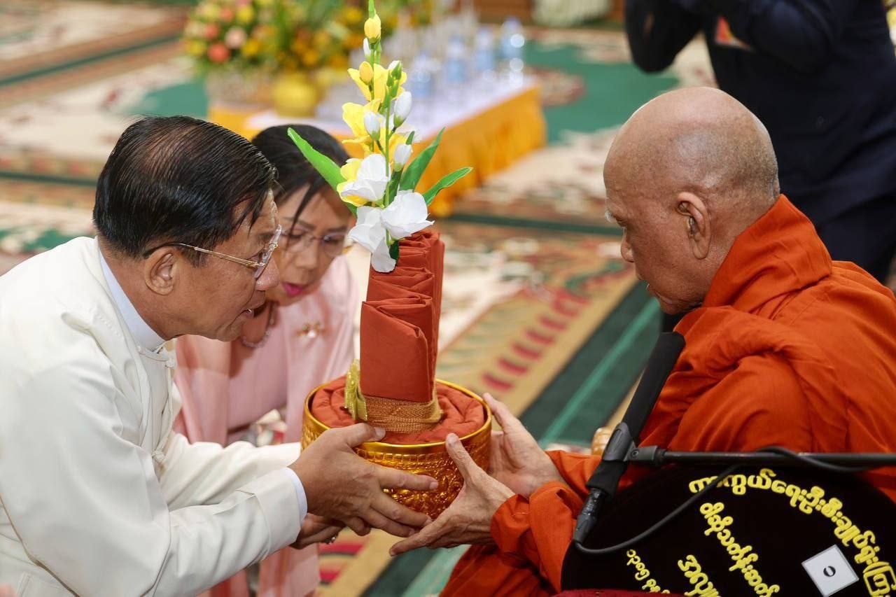 နိုင်ငံတော်သံဃ မဟာနာယကအဖွဲ့အကျိုးတော်ဆောင် ရန်ကုန်တိုင်းယသန်လျင်မြို့မင်းကျောင်းပထမပြန်စာသင်တိုက်၊ ပဓာန နာယကအဂ္ဂမဟာ ပဏ္ဍိတအဂ္ဂမဟာ သဒ္ဓမ္မဇောတိကဓဇ ဒေါက်တာ ဘဒ္ဒန္တစန္ဒိမာ ဘိဝံသ ဆရာတော်ကြီးအမှူးပြုသည့် ဥပ္ပါတသန္တိစေတီကြီး၏ ဩဝါဒါ စရိယဆရာ တော်ကြီးများအပါအဝင် ဆရာတော်ကြီး ၂၇ ပါး ကြွရောက်ချီးမြှင့်တော်မူခဲ့ကြသည်။