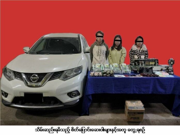 ယင်းနေ့ည ၉ နာရီခန့်က မူးယစ်ဆေးဝါးတားဆီးနှိမ်နင်းရေးရဲတပ်ဖွဲ့ဝင်များသည် တာချီလိတ်မြို့၊ဆန်ဆိုင်း(ခ)ရပ်ကွက်၊ဗိုလ်ချုပ်လမ်းတွင် စိုင်းစမ်လှိုင်း(ခ)အိုက်အွမ်နှင့်မသက်ထက်ထားနိုင် တို့မောင်းနှင်လိုက်ပါလာသည့် NISSAN X-TRAIL ကားအားစစ်ဆေးခဲ့ကြသည်။