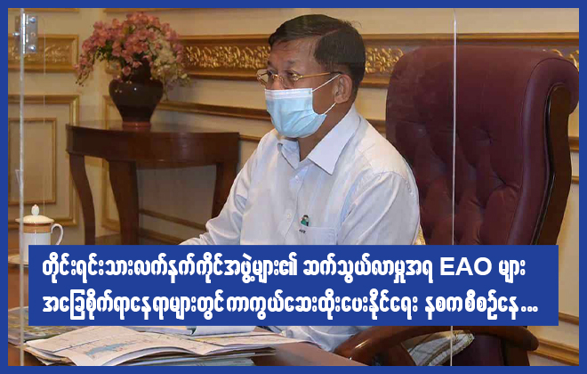 နစကဥက္ကဌ ကတော့ တိုင်းရင်းသား လက်နက်ကိုင်အဖွဲ့တွေက ၎င်းတိုနယ်မြေများအတွင်း ကာကွယ်ဆေးထိုးနှံပေး နိုင်ရေး ဆက်သွယ်လာခြင်းများ ရှိနေကြောင်းထုတ်ဖော်ပြော ဆိုထားပြီး တိုင်းဒေသကြီးနဲ့ ပြည်နယ်များ၊ ကိုယ်ပိုင် အုပ်ချုပ်ခွင့်ရ တိုင်း၊ ဒေသများက တာဝန်ရှိသူတွေကို သက်ဆိုင်ရာ EAOs နယ်မြေတွေမှာ ကာကွယ်ဆေးထိုးနှံနိုင်ရေး ကျန်းမာရေး ဝန်ကြီးဌာနက သတ်မှတ်ထားတဲ့ ဦးစားပေးအုပ်စုအလိုက် စာရင်း ပြုစု ဆောင်ရွက်ကြဖို့ မှာကြားထားတာရှိပါတယ်။