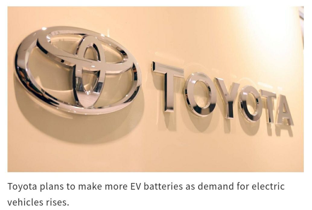 ကားကုမ္ပဏီကြီးသည် Panasonic Holdings နှင့် ဖက်စပ်လုပ်ကိုင်သည့် Prime Planet Energy & Solutions စက်ရုံနှင့်ဂျပန်နိုင်ငံရှိ Toyota ၏ကိုယ်ပိုင်စက်ရုံများတွင်ပါ ပြည်တွင်းရင်းနှီးမြှုပ်နှံမှုအနေဖြင့် ယန်း ၄၀၀ ဘီလီယံကို ရင်းနှီးမြှုပ်နှံမည်ဖြစ်ကြောင်းသိရှိရသည်။မြောက်ကာရိုလိုင်းနားပြည်နယ်တွင် တည်ဆောက်မည့် ဘက္ထရီစက်ရုံအတွက်လည်း ယန်း ၃၂၅ ဘီလီယံသုံးစွဲမည်ဖြစ်သည်ဟုဆိုသည်။