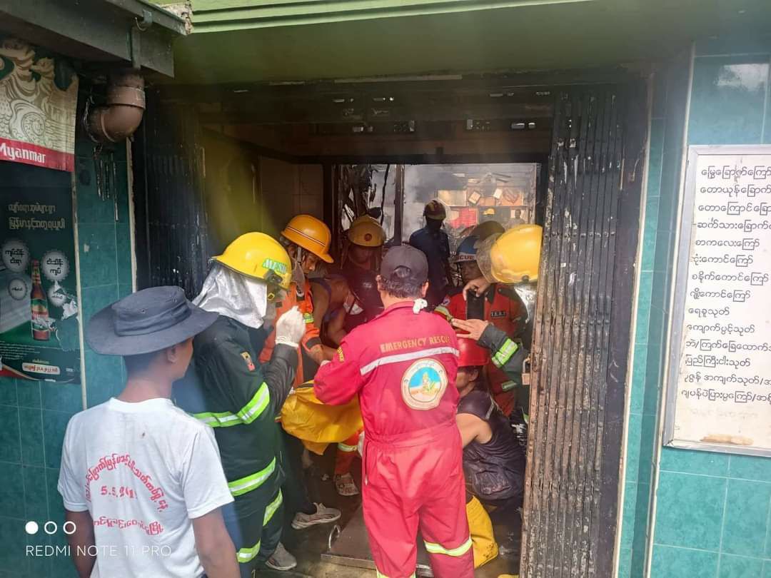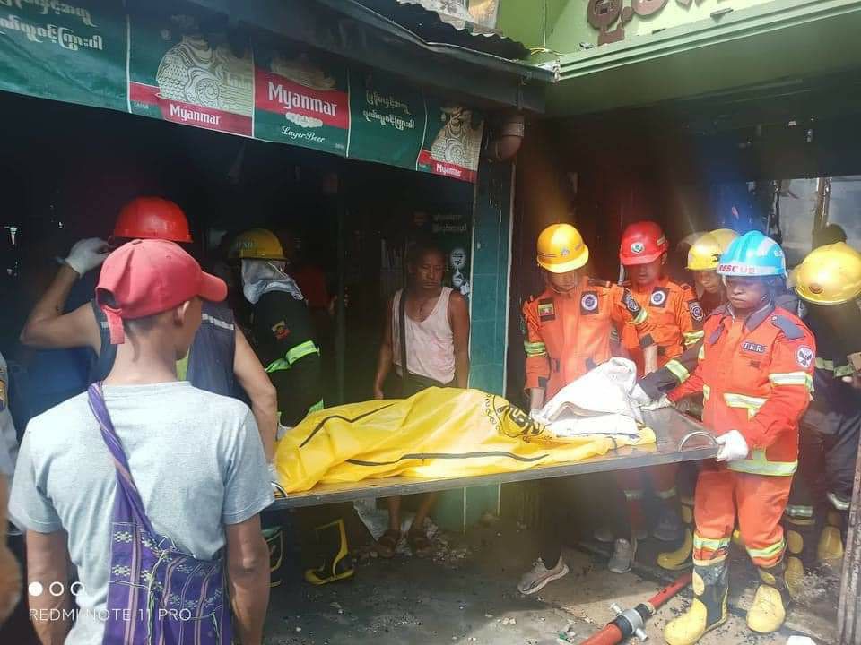 “မီးလောင်တဲ့အချိန်မှာ အဘိုးတစ်ယောက်နဲ့အ ဘွားတစ်ယောက်ရှိနေတယ်သိရလို့ ကယ်ဆယ်ရေးကိုအမြန်ဆုံးလုပ်ခဲ့ပါတယ် အဘွားကိုတော့ကယ်ထုတ်နိုင်ခဲ့တယ် အဘိုးကကြတော့အပေါ် ထပ်မှာနေတာဆိုတော့ မီးလောင်တဲ့အချိန်မှာ အ ပေါ်ထပ်ကပြိုကျသွားတော့ အချိန်မီမကယ်ထုတ်နိုင်ခဲ့ဘူး ရသလောက်ဝင်ပြီးဆွဲထုတ်ခဲ့ပေမယ့် သေဆုံးနေပါပြီ”ဟု လူမှုကူညီရေးအသင်းဝင်တစ်ဦးကပြောသည်။