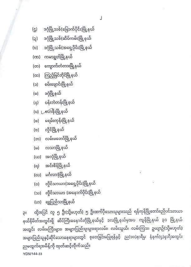 HomeNewsLocal Newsဒလနှင့်ဆိပ်ကြီးခနောင်တို မှအပ ကျန်ရန်ကုန်တိုင်းအတွင်းရှိ(၃၁)မြို့နယ်ကို...