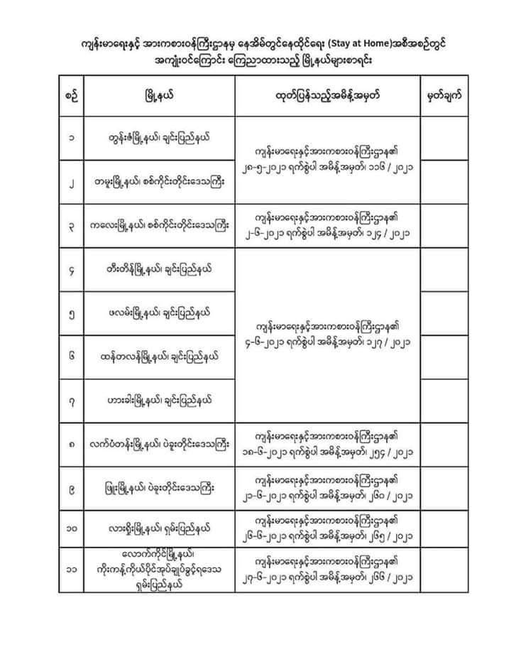 အခု ကိုဗစ် တတိယလှိုင်းမှာတော့ မြိုနယ်အချို့ မှာ ကူးစက်သူ အရေအတွက် သိသာစွာ များလာတာကြောင့် ထိရောက်တဲ့ ထိန်းချုပ် မှုတွေကို အစိုးရက ပြုလုပ်နေပါတယ်။