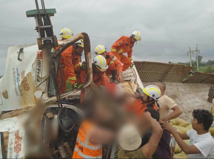 နောင်ချို-ရပ်စောက်သွား ကားလမ်းတွင် ကုန်တင်ကားတစ်စီးတိမ်းမှောက်ကာ ယာဉ်မောင်းသေဆုံးပြီး ယာဥ်နောက်လိုက်ဒဏ်ရာရ