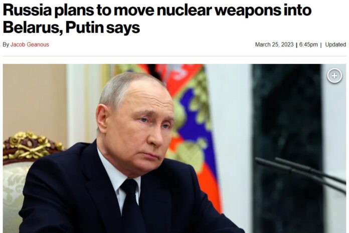 ယူကရိန်းကို ထောက်ခံသည့် အနောက်နိုင်ငံများကို သတိပေးသည့်အနေဖြင့် မိမိနိုင်ငံမှ နျူကလီးယားလက်နက်အချို့အား ဘီလာရုစ်နိုင်ငံတွင်းသို့ ရွှေ့ပြောင်းရန် စီစဉ်နေကြောင်း ရုရှားသမ္မတ ဗလာဒီမာပူတင်ကပြောသည်။