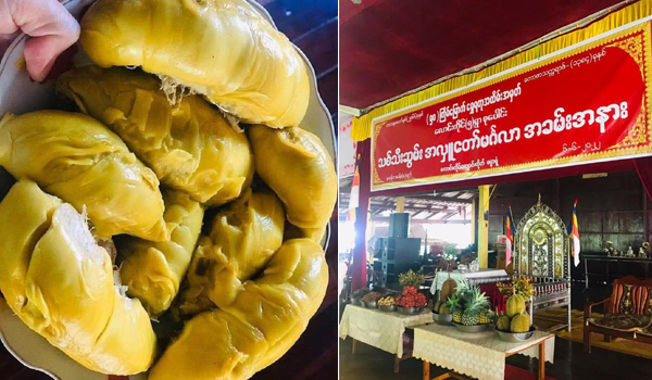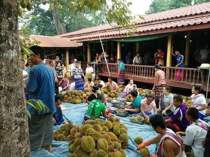 လောင်းကိုင်(ကြာအင်း) ရွာ မှာ ဒေသထွက် ဒူးရင်းသီးတွေကိုရဟန်းသံဃာတွေ ကို