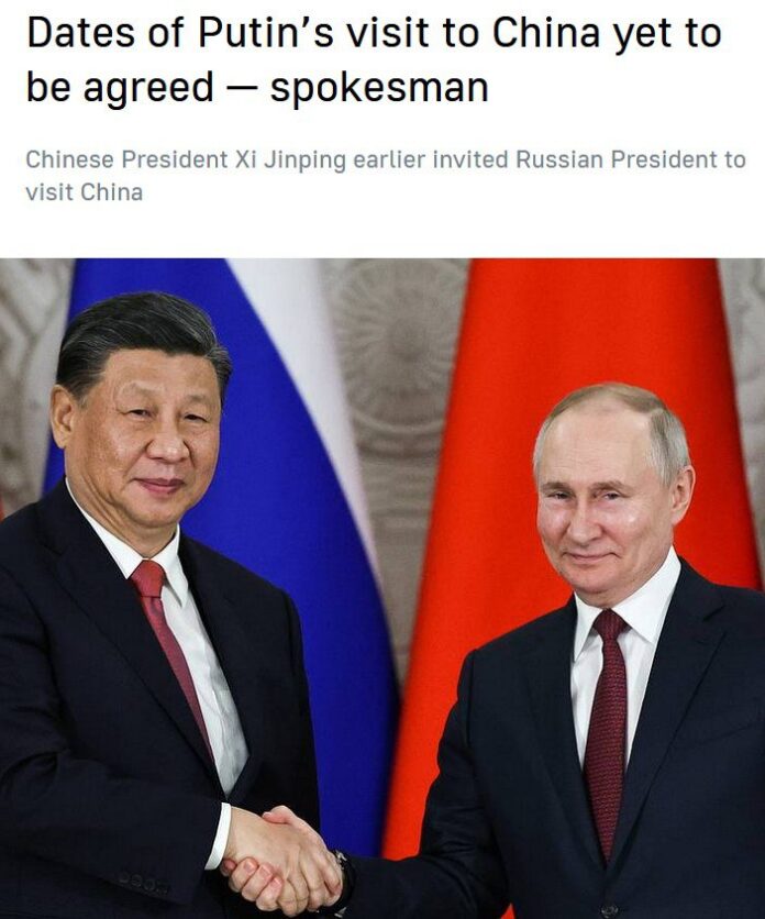 ရုရှားသမ္မတ ဗလာဒီမာပူတင် တရုတ်နိုင်ငံသို့ အလည်အပတ်သွားရောက်မည့် နေ့ရက်များကို နှစ်ဖက်ညှိနှိုင်းဆောင်ရွက်နေပြီဖြစ်ကြာင်း ရုရှားအစိုးရ၏ ပြောရေးဆိုခွင့်ရှိသူ Dmitry Peskov က ပြောကြားသည်။