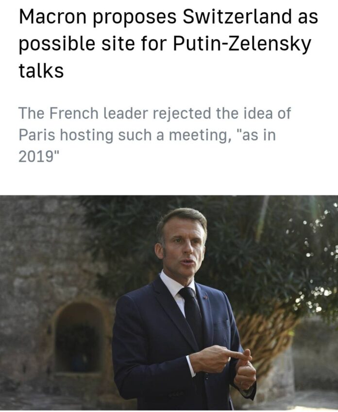 အင်တာဗျူးတစ်ခုမှာ ပြင်သစ်သမ္မတက ၂၀၁၉ တုန်းကလိုပဲ ပဲရစ်မြို့မှာ အခုလိုတွေ့ဆုံဖို့ကတော့ အခုချိန်မှာ အခြေအနေက “ကွဲပြားတဲ့အဆင့်” ဖြစ်နေတာကြောင့် “ကြားနေနိုင်ငံ” တစ်ခုကိုသာ ရွေးချယ်သင့်တယ်လို့ တီဗီသတင်းထောက်တစ်ဦးရဲ့ မေးခွန်းကို သူကပြန်လည်ဖြေကြားခဲ့တာဖြစ်ပါတယ်။ “ဖြစ်နိုင်ခြေအရဆိုရင်တော့ ဆွစ်ဇာလန်၊ ဂျီနီဗာကို ကျွန်တော်သဘောကျပါတယ်။ ဒါမှမဟုတ် တခြားနိုင်ငံတစ်ခုလည်း ဖြစ်နိုင်ပါတယ်။ ပြီးခဲ့တဲ့ အကြိမ်တုန်းကတော့ တူရကီနိုင်ငံ၊ အစ္စတန်ဘူလ်မှာ နှစ်နိုင်ငံတွေ့ဆုံမှုတွေ လုပ်ခဲ့ပါတယ်” လို့ သူကပြန်ပြောပြခဲ့ပါတယ်။