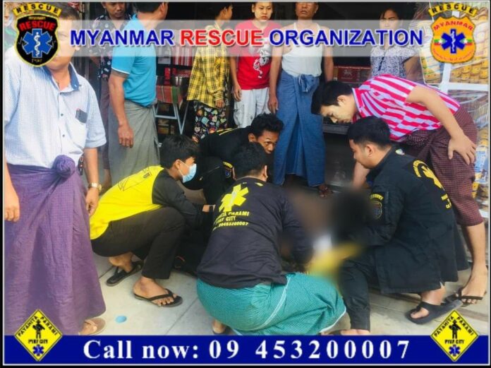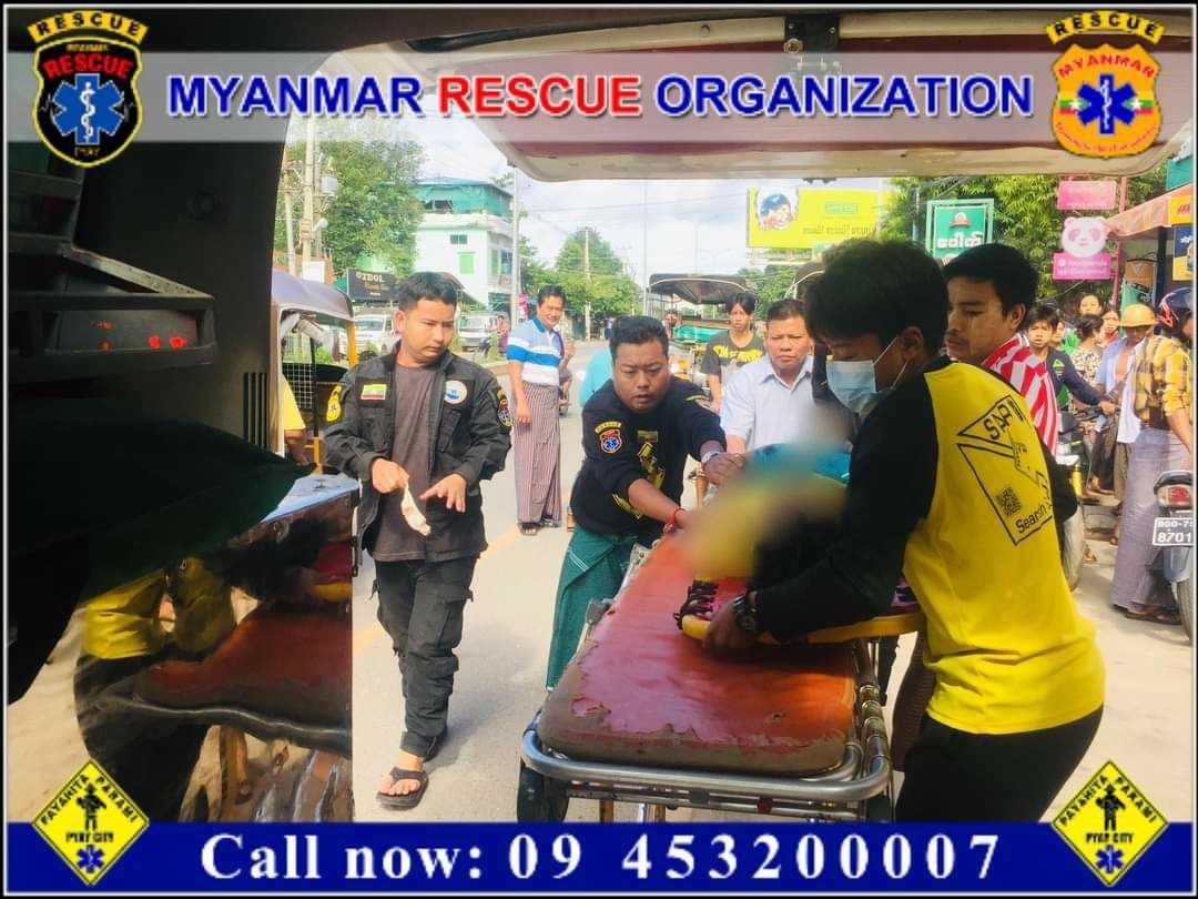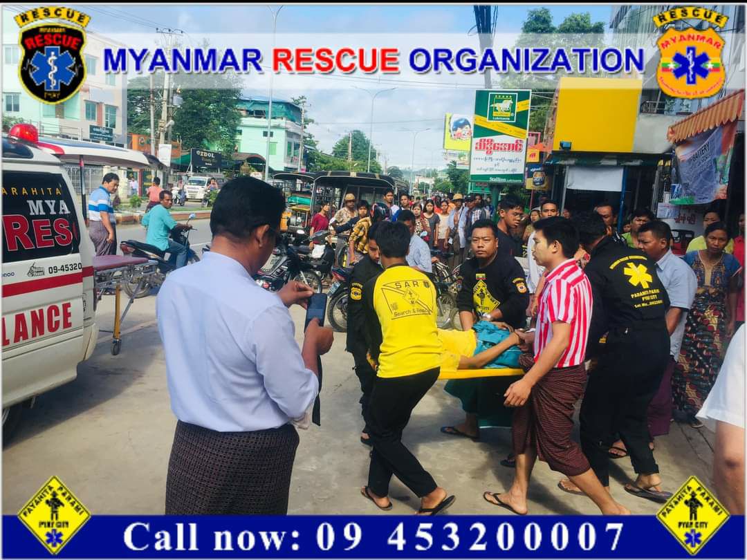 တိုက်ပေါ်မှခုန်ချခဲ့သည့် အမျိုးသားသည် နှာခေါင်းသွေးထွက်၊ ဘယ်ဘက်ပေါင်ကျိုး၊ ခြေသလုံးအရေပြားလန်၊သွေးထွက်ဒဏ်ရာများ(စိုးရိမ်ရ)ရရှိခဲ့သဖြင့် မြန်မာနိုင်ငံလူမှုကယ်ဆယ်ရေးအ ဖွဲ့(ပြည်)မှ မြေပြင်ကုသမှုများပြုလုပ်ပြီးနောက် ပြည်မြို့ပြည်သူ့ဆေးရုံကြီးသို့ပို့ဆောင်ပေးခဲ့ကြောင်း သိရသည်။