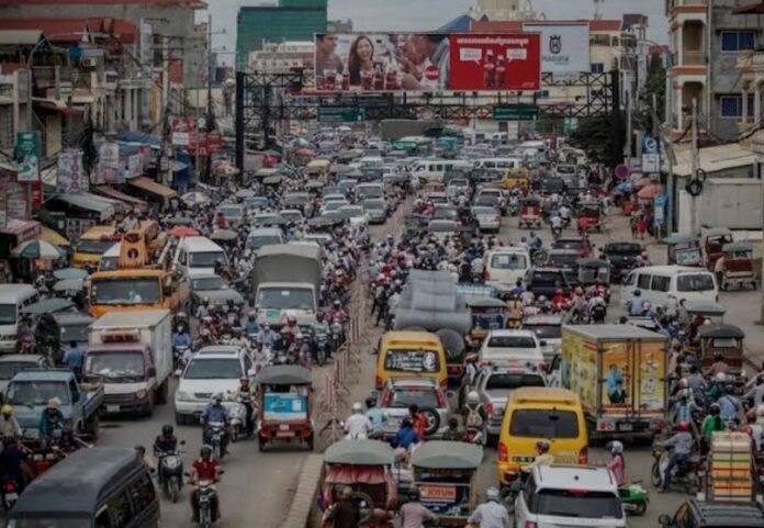 ကမ္ဘောဒီးယားနိုင်ငံ ဖနွမ်းပင်မြို့၌မီးပွိုင့်မရှိသော လမ်းဆုံများတွင် ယာဉ်ထိန်းရဲများ ပုံမှန်ရှိမနေခြင်းကြောင့် ယာဉ်ကြောပိတ်ဆို့မှုများ ထိန်းမနိုင်သိမ်းမရ ဖြစ်လေ့ရှိသည်။