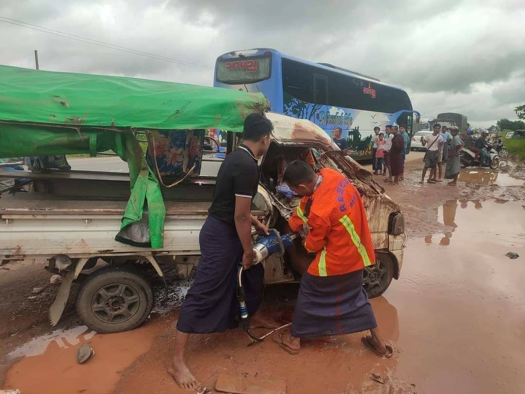 အလားတူ Hight Jet ကားမောင်းသူနှင့်ကားခေါင်းခန်း၌ လိုက်ပါလာသည့် ခရီးသည် ၁ ဦးတို့မှာ ခေါင်းခန်းအတွင်း၌ ညပ်နေသဖြင့် ဘုရားကြီးမြို့အရန်မီးသတ်တပ်ဖွဲ့ဝင်များက အနီရောင်အဆင့် ကယ်ဆယ်ရေးလုပ်ငန်းများပြုလုပ်ခဲ့ကြကြောင်း သိရသည်။