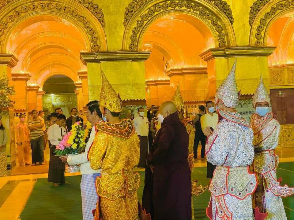 ထိုသို့ ဆက်ကပ်ပူဇော်ရာတွင် နိုဝင်ဘာ ၆ ရက်ညပိုင်းက ရပ်လုပ်ခဲ့သည့် မသိုးသင်္ကန်းအား သြဝါဒါစရိယဆရာတော်ကြီးများ၊ စေတီတော်ဘဏ္ဍာတော်ထိန်းဂေါပကအဖွဲ့ဝင်များနှင့်တာဝန်ရှိသူ များကသယ်ဆောင်၍ ဘုရားကြီးအား လက်ယာ ရစ် ၃ ပတ်လှည့်လည်ပူဇော်ပြီးနောက် ကပ်လှူပူ ဇော်ခဲ့ကြခြင်းဖြစ်သည်။