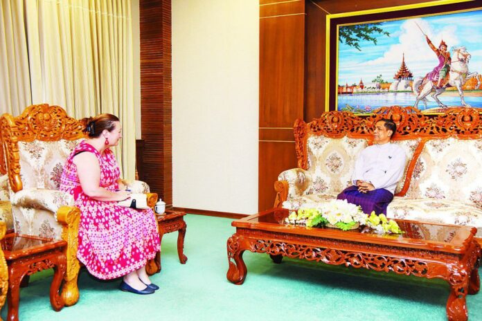 နှင့်ရန်ကုန်မြို့ရှိ ကုလသမဂ္ဂလူသားချင်းစာနာထောက်ထားမှုဆိုင်ရာ ယာယီညှိနှိုင်းရေးမှူးနှင့်ကုလသမဂ္ဂ လူသားချင်းစာနာထောက်ထားမှုဆိုင်ရာ ညှိနှိုင်းရေးရုံး(UNOCHA) ၏ ယာယီအကြီးအကဲ Ms. Danielle Parry တို့တွေ့ဆုံဆွေးနွေးခဲ့ကြသည်။