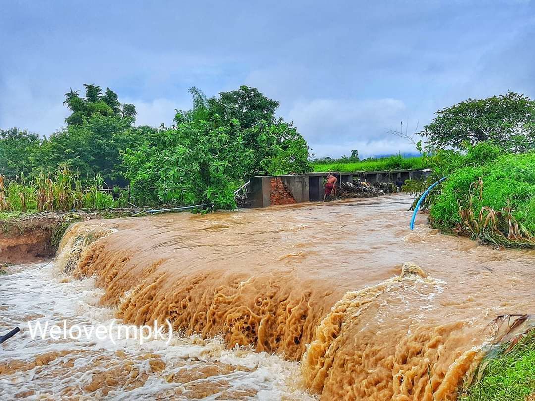 မိုင်းဖြတ်မြို့နယ်၌ မိုးအဆက်မပြတ်ရွာသွန်းမှုကြောင့် ဝမ်လုံးရေလွှဲဆည်၏ မြေသားဘောင် ပေ ၅၀ ခန့်ပြိုကျ