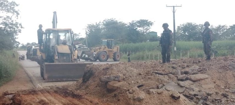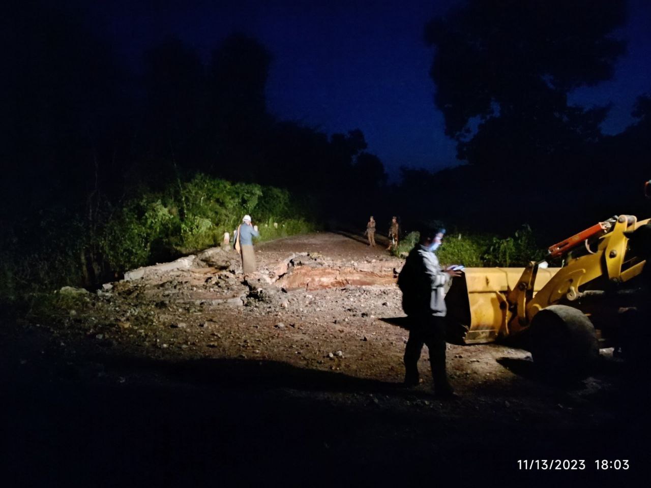 အချို့နေရာများတွင် သစ်ပင်ကြီးများအား ခုတ်လှဲပိတ်ဆို့ခြင်းနှင့် မြေကြီးများ စုပုံပိတ်ဆို့ခြင်းများ ပြုလုပ်ခဲ့သဖြင့် မော်တော်ယာဉ်များနှင့် ခရီးသွားပြည်သူများ သွားလာမှုရပ်တန့်ခဲ့ရကြောင်း သိရသည်။