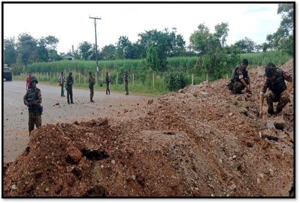 လက်နက်ကိုင်အဖွဲ့များသည် ပြင်ဦးလွင် – နောင်ချို – ကျောက်မဲ – လားရှိုး ပြည်ထောင်စုကားလမ်းမကြီးတလျှောက်တွင် နောင်ချိုမြို့နယ်၊ ရွှေညောင်ပင်အနီး၌ (၁) နေရာ၊ လယ်ကျင်းကွေ့ ကျေးရွာအနီး၌ (၁) နေရာ၊ အုမ္မခါးကျေးရွာအနီး ၌ (၁) နေရာ၊ ဂုတ်တွင်းရှုခင်း သာအနီးတဝိုက်၌ (၁) နေရာ၊ နောင်ပစ်လမ်းခွဲ နေရာ၌ (၁) နေရာ၊ နောင်ပစ်နှင့် နောင်ပိန်ကျေးရွာကြား နေရာတဝိုက်တွင် (၇) နေရာတို့၌ မြေဖြတ်ကျင်းများတူး၍ ဖြတ်တောက်ပိတ်ဆို့ခြင်းများ ပြုလုပ်ခဲ့ကြောင်း သိရသည်။