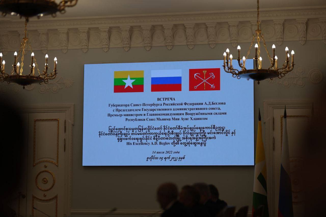 စိန့်ပီတာစဘတ်မြို့အစိုးရအဖွဲ့အကြီးအကဲ Mr. Alexander Beglov နှင့် နစက ဥက္ကဋ္ဌ၊နိုင်ငံတော်ဝန်ကြီးချုပ် ဗိုလ်ချုပ်မှူးကြီးမင်းအောင်လှိုင်တို့ ဇူလိုင် ၁၄ ရက်ကတွေ့ဆုံစဥ် ဆွေးနွေးခဲ့ကြခြင်းဖြစ်သည်။