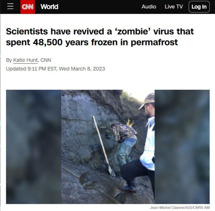 အာတိတ်ဒေသမြေအောက်နက်ရှိုင်း၍ ဆက်တိုက်အေးနေသော နေရာတစ်ခုတွင် နှစ်ပေါင်း ၄၈၅၀၀ ခန့် အေးခဲနေသော ဇွန်ဘီး(Zombie)ဗိုင်းရပ်စ်ကို သိပ္ပံပညာရှင်များ မကြာသေးမီက ရှာဖွေတွေ့ရှိခဲ့ကြကြောင်း သိရသည်။