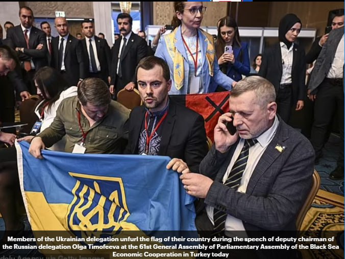 ယူကရိန်းနှင့် ရုရှားနိုင်ငံများမှ ကိုယ်စားလှယ်များသည် တုကီယေးနိုင်ငံ၊ အန်ကာရာ မြို့တွင် မေလ ၄ ရက် ကြာသပတေးနေ့က ကျင်းပခဲ့သော ပင်လယ်နက်စီးပွားရေး ပူးပေါင်းဆောင်ရွက်ရေး ပါလီမန် ညီလာခံ (PABSEC) အစည်းအဝေး၌ ခိုက်ရန်ဖြစ်ပွားခဲ့ကြောင်း သိရသည်။