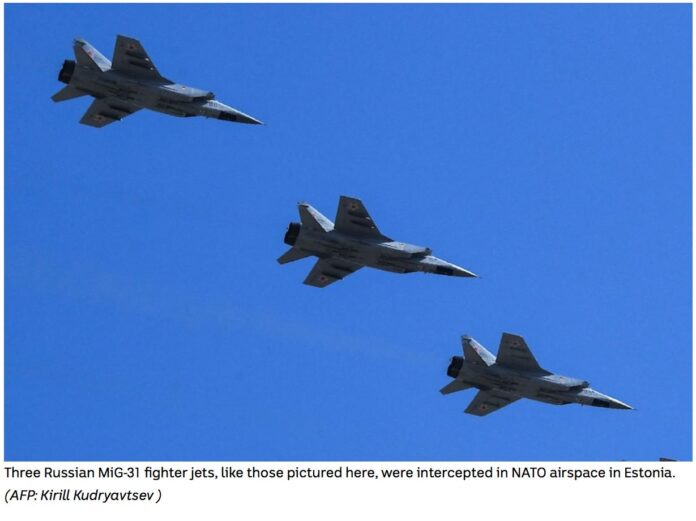 MiG-31 တိုက်လေယာဉ် သုံးစင်းသည် ခွင့်ပြုချက်မရှိဘဲ အက်စ်တိုးနီးယားလေပိုင်နက်အတွင်းဝင်ရောက်ခဲ့ကာ ၎င်းတို့အား ပြန်ဆုတ်ခွာခိုင်းခြင်းမပြုမီ စုစုပေါင်း ၁၂ မိနစ်ခန့် လေပိုင်နက်အတွင်းရှိနေခဲ့ကြောင်းနှင့် ယင်းသည် မြန်နှုန်းမြင့်လေယာဉ်တစ်စင်း နိုင်ငံအနှံ့အပြားသို့ ပျံသန်းသွားရောက်နိုင်သည့် အချိန်ကာလတစ်ခုဖြစ်ကြောင်း အက်စ်တိုးနီးယားအစိုးရက ပြောကြားခဲ့သည်။