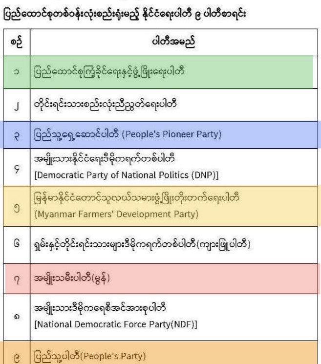 လာမည့်ရွေးကောက်ပွဲတွင် ဝင်ပြိုင်ရန် ရှိနေသည့် ပါတီ (၆၁) ပါတီ စာရင်းကို UEC ထုတ်ပြန်အသိပေး