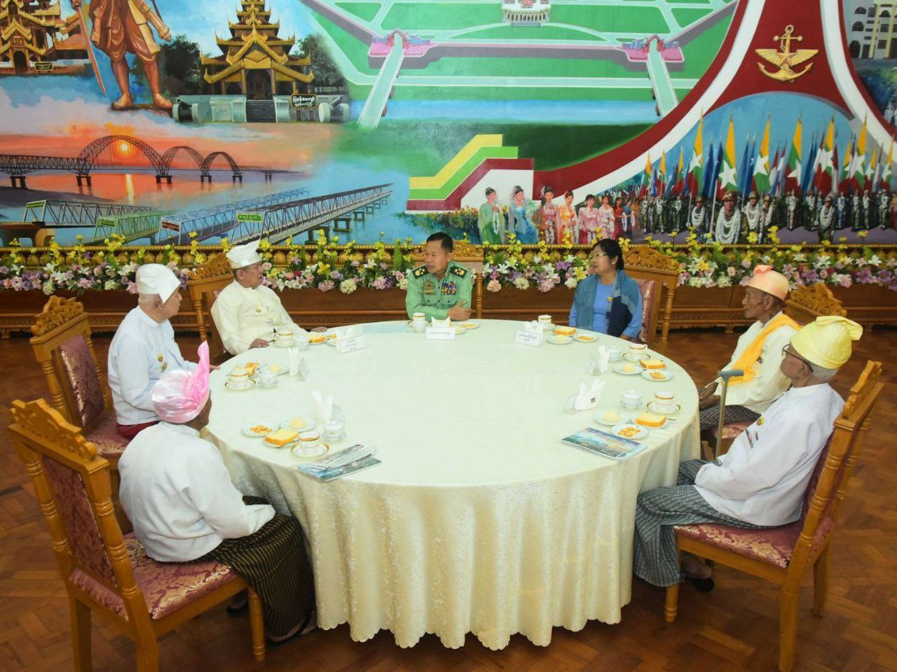 (၇၈)နှစ်မြောက် တပ်မတော်နေ့အခမ်းအနားသို့တက်ရောက်မည့် လွတ်လပ်ရေးမော်ကွန်းဝင်ပုဂ္ဂိုလ် ၅ ဦးအား နစက ဒု-ဥက္ကဋ္ဌနှင့်ဇနီးတို့က မတ် ၂၇ ရက်နံနက်က လက်ဖက်ရည်ဝိုင်းဖြင့်တည်ခင်းဧည့်ခံ၍ ဂါရ၀ပြုတွေ့ဆုံခဲ့သည်။