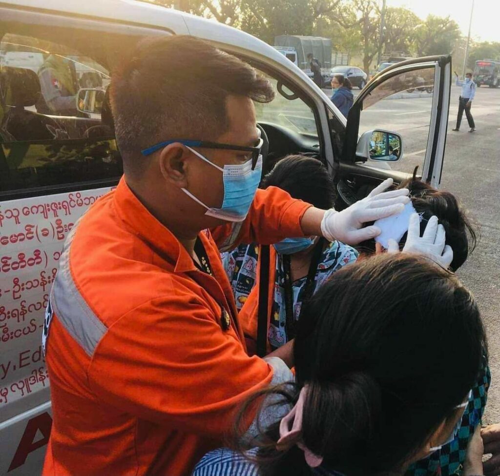 “ဒဏ္ရာရ ၇ ေယာက္ထဲမွာ ၄ ေယာက္ကိုကြၽန္မတို႔အသင္းကားနဲ႔ပို႔ေပးလိုက္တယ္ ေနာက္ ၃ ေယာက္ကေတာ့ လႈိင္အေျခစိုက္လူမႈကူညီေရးအသင္းကားနဲ႔ပို႔တယ္ ကြၽန္မတို႔ေဆး႐ုံပို႔ေပးတဲ့အထဲက တစ္ေယာက္ကေတာ့ ေခါင္းထိထားလို႔စိုးရိမ္ရတဲ့အေနအထားရွိတယ္”ဟု ေ႐ႊေရာင္သမိုင္းအသင္း၏ တာဝန္ရွိသူကေျပာသည္။