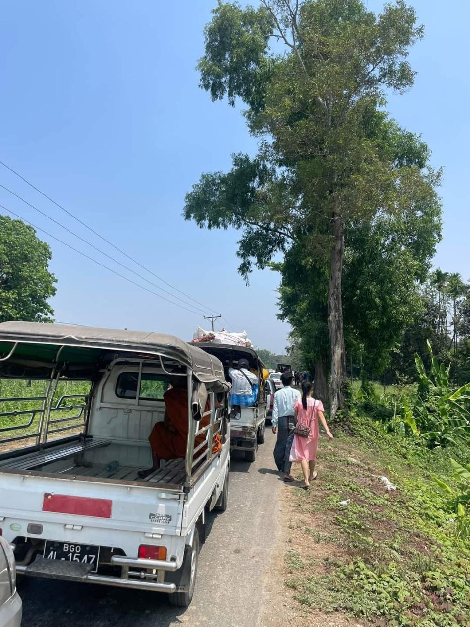 သင်္ကြန်ရုံးပိတ်ရက် နေရပ်ပြည်မည့်သူများ များပြားနေခြင်းကြောင့် မအူပင်မြို့အနီး ယာဉ်ကြောပိတ်နေသည့် မြင်ကွင်းကို ကိုယ်တိုင်ကြုံတွေ့သူတစ်ဦးက လူမှုကွန်ရက်တွင် ပြန်လည်မျှဝေထားသည့် မြင်ကွင်းဖြစ်သည်။