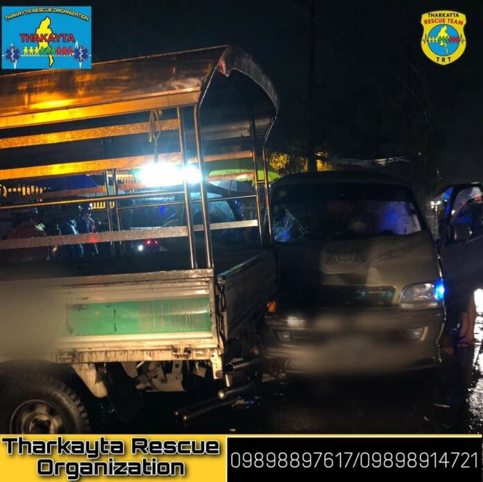 ဇွန်လ ၁၄ ရက်၊ ည ၈ နာရီခွဲခန့်က သာကေတမြို့နယ်၊ ဧရာဝဏ်လမ်းမကြီးပေါ်ရှိ ကျောက်တိုင်မှတ်တိုင်အနီးတွင် Super Custom ကားမှ Light Truck ကား၏ နောက်ပိုင်းဘေးဖက်ခြမ်းအား ဝင်တိုက်မိပြီး Light Truck ကားမှာ ဓာတ်တိုင်အား ထပ်မံဝင်တိုက်မိခဲ့ခြင်းဖြစ်သည်။
