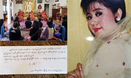 မိတ်ဆွေများနဲ့ အကတပည့်များက သူမကို ရောက်ရာဘုံဘဝမှ သာဓုအနုမောဒနာ ခေါ်ဆိုနိုင်စေရန် လှူဒါန်းအမျှဝေ ဆုတောင်းပေး ခဲ့ကြတာဖြစ်ပါတယ်။