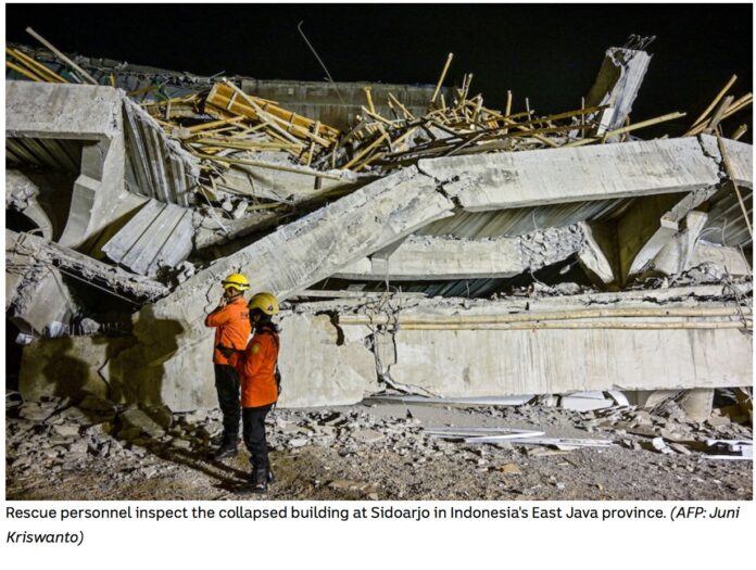 ပြီးခဲ့သော တနင်္လာနေ့က အရှေ့ဂျာဗားပြည်နယ် စီဒိုအာဂျိုမြို့ရှိ AI Khoziny ကျောင်းသည် အပေါ်ထပ်များ၌ လုပ်ဆောင်နေသော တည်ဆောက်ရေးလုပ်ငန်းများ၏ ဒ-ဏ်ကို အောက်ခြေဖောင်ဒေးရှင်းက မခံနိုင်ဖြစ်သ၍ မွန်းလွဲပိုင်းတွင် ဝတ်ပြုနေကြသည့် ရာနှင့်ချီသော ကျောင်းသားများပေါ်ပြိုကျသွားခဲ့သည်။