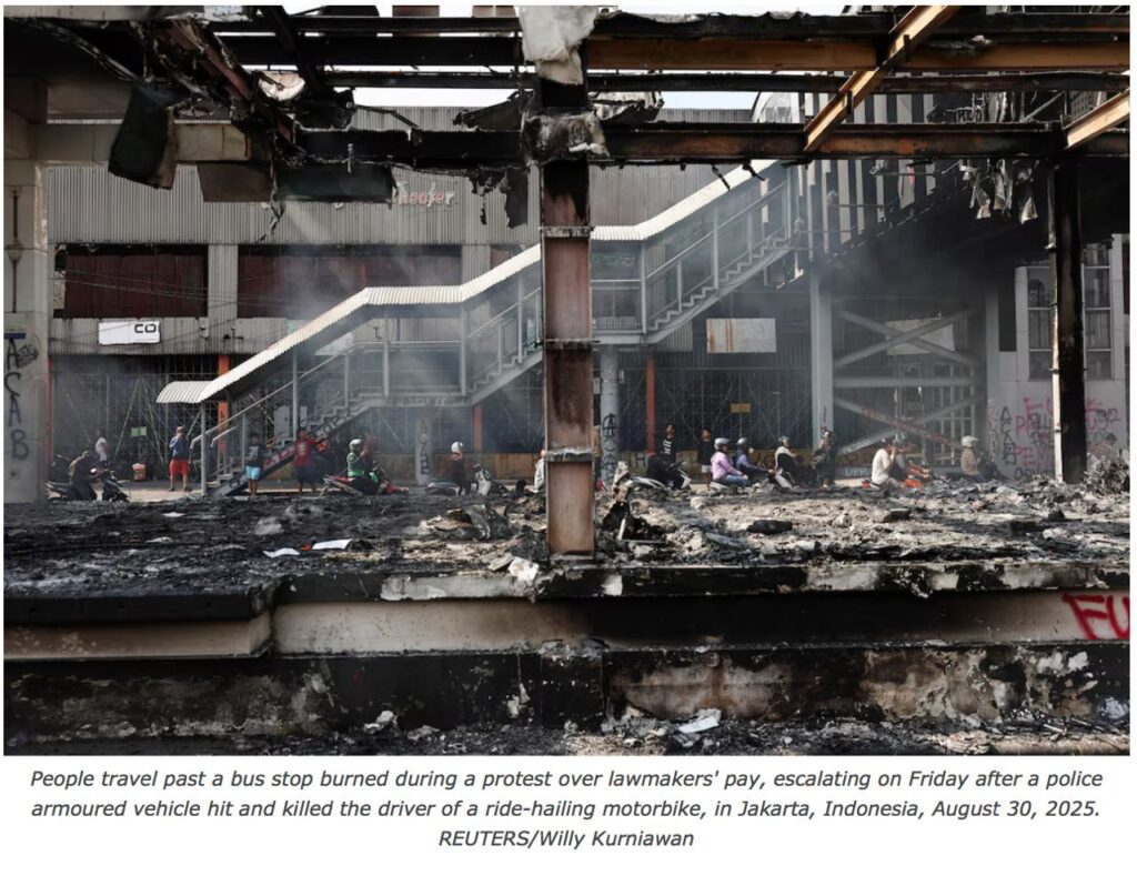 အင်ဒိုနီးရှားသမ္မတ ပရာဘိုဝို ဆူဘီယန်တိုသည် မြို့တော်ဂျကာတာအပြင်ဘက်တွင် ဒေသဆိုင်ရာပါလီမန်အဆောက် အအုံအချို့ မီးရှို့ခံရပြီး၊ ဆန္ဒပြပွဲများ ရက်ကြာရှည်လာသဖြင့် တရုတ်နိုင်ငံသို့ သွားရောက်ရန် စီစဉ်ထားသည့် ခရီးစဉ်ကို ဖျက်သိမ်းလိုက်ကြောင်းသိရသည်။