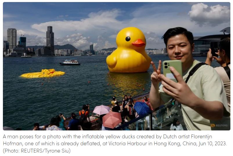 အဆိုပါဘဲရုပ်လေးနှစ်ရုပ်သည် ဟောင်ကောင်ဆိပ်ကမ်း၌ နှစ်ပတ်ကြာရှိနေမည်ဖြစ်ကြောင်းလည်းသိရသည်။