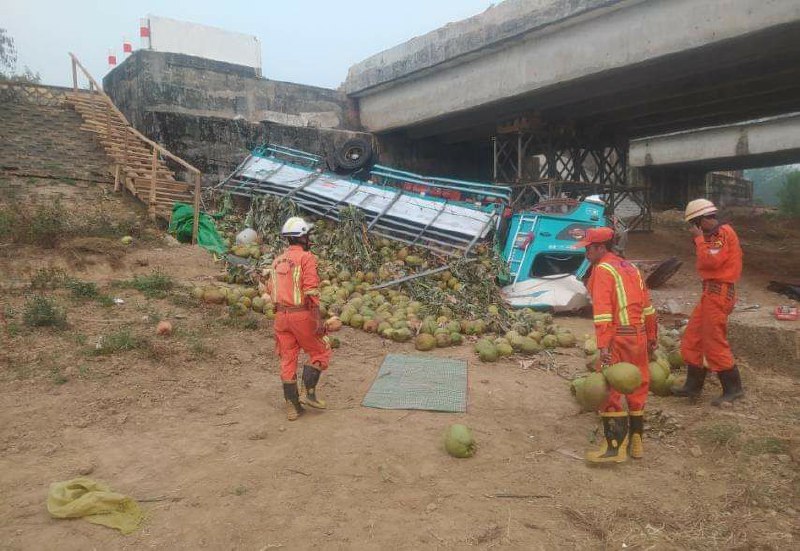 HomeNewsLocal Newsအမြန်လမ်းတွင် အုန်းသီးများတင်လာသည့်ကုန်တင်ကား တံတားအောက်ထိုးကျတိမ်းမှောက်၊...