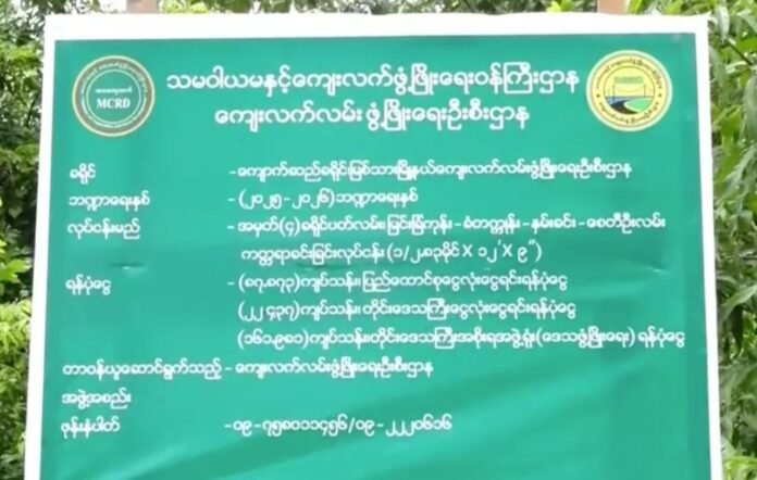ဖြင့်လည်းကောင်း ၊လမ်းအရှည် (၀/၃.၆၈)မိုင်အား တိုင်းဒေသကြီးအစိုးရအဖွဲ့ရုံး(ဒေသဖွံ့ဖြိုးရေး) ရန်ပုံငွေ (၁၆၁.၉၈၁)ကျပ်သန်းတို့ဖြင့်လည်းကောင်း ဆောင်ရွက်ခြင်းဖြစ်ပြီး ကျေးလက်လမ်းဖွံ့ဖြိုးရေးဦးစီးဌာနမှ တာဝန်ယူဆောင်ရွက်နေခြင်းဖြစ်ကြောင်း သိရသည်။