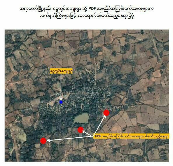 PDF အဖွဲ့ဝင်များသည် ငွေတွင်းကျေးရွာအတွင်းသို့ ကျေးရွာ၏ အရှေ့တောင်ဘက်မှနေ၍ လက်လုပ်စိန်ပြောင်းများဖြင့် ပစ်ခတ်တိုက်ခိုက်ခဲ့သည်ဟု သတင်းထုတ်ပြန်ရေးအဖွဲ့မှ သိရသည်။