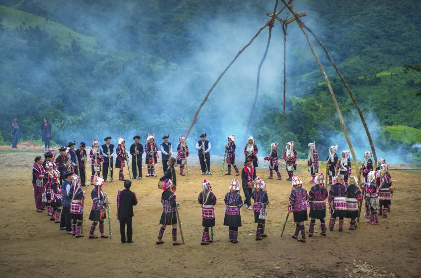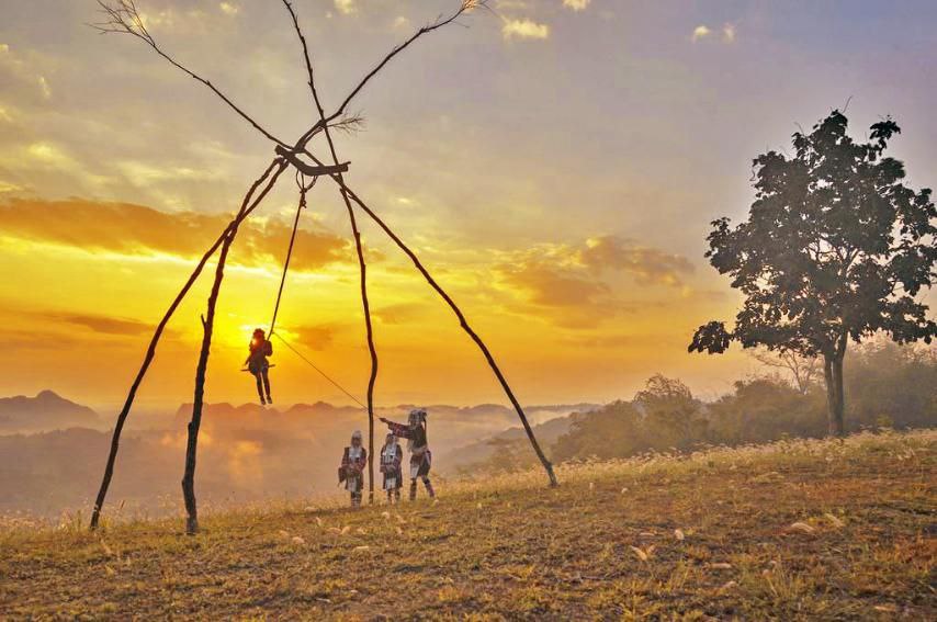 ၁၆ ရက်နေ့က  မိိုင်းဆတ်မြို့နယ်    မိုင်းတွမ်းတောင်ပေါ်အုပ်စု အူးဖူဒေ့ (ခ) ဦးအားဆော် ကျေးရွာ တွင် ကျင်းပနေသည့် အာခါရိုးရာ စုပေါင်းဒန်းစီး ပွဲတော်ကို တွေ့မြင်ရစဥ်။