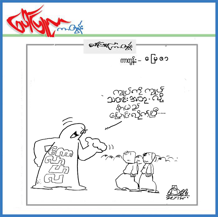 [spb_image image=”51068″ image_size=”full” frame=”noframe” caption=”ကာတြန္း -ေျမဇာ” caption_pos=”below” remove_rounded=”yes” fullwidth=”no” overflow_mode=”none” link_target=”_self” lightbox=”yes” intro_animation=”none” animation_delay=”200″ width=”1/1″ el_position=”first last”][/spb_image]