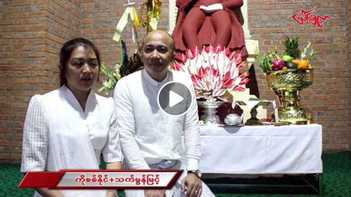 ကိုစစ္နိုင္ + သရုပ္ေဆာင္ သက္မြန္ျမင့္ မိသားစုတို႕ရဲ႕ ဘုရားအေနကဇာတင္ေရစက္ခ် အလွဴေတာ္မဂၤလာအခမ္းအနားျမင္ကြင္း
