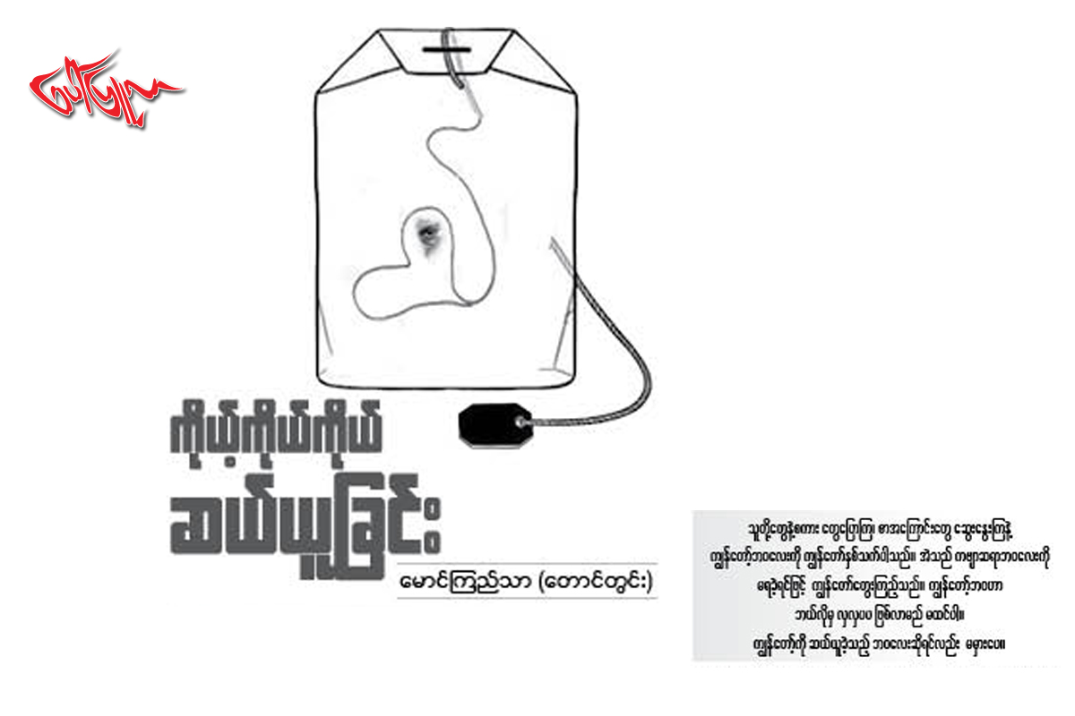 ကြၽန္ေတာ္ဟာ ျပည္သူ႔ကုန္ တိုက္တစ္ခုမွာ အလုပ္လုပ္ခဲ့တာျဖစ္ ပါသည္။ ေကာင္တာတာဝန္ခံလည္း ျဖစ္ခဲ့ပါ၏။ တစ္ေန႔မွာ လူတစ္ ေယာက္က သြားတိုက္ေဆးလာဝယ္ ပါသည္။ အေရာင္းသြက္ ပစၥည္းမ်ား ကို အေရာင္းပိတ္ပါၿပီ။ သူက “ၿမိဳ႕ သစ္ကေန လာတဲ့အေၾကာင္း။ လာ တဲ့အခါ ဘတ္စ္ကားခ ခက္ခဲေၾကာင္း၊ ျဖစ္ႏိုင္ရင္ သြားတိုက္ေဆး တစ္ဘူး ဝယ္ခ်င္ေၾကာင္း” ေျပာပါသည္။ ကြၽန္ေတာ္က ခန္းမမန္ေနဂ်ာကို တင္ျပၿပီး ေရာင္းေပးလိုက္ပါ၏။ ဝယ္သူ၏လိပ္စာကိုလည္း သူ႔လက္ ေရးႏွင့္သူ ေရးခိုင္းခဲ့ပါသည္။