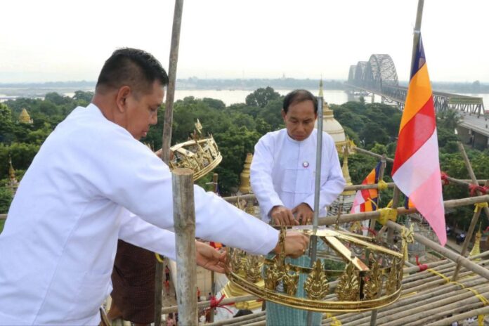 မန္တလေးငလျင်ကြီးဒ-ဏ်ကြောင့်ပျ-က်စီးမှုများဖြစ်ပေါ်ခဲ့သည့် စစ်ကိုင်းတိုင်း၊ စစ်ကိုင်းမြို့၊ တကောင်းရပ်ကွက်၊ သစ္စာစေတီဘုရားပရဝုဏ်အတွင်းရှိ သံ၊ ဂုဏ်၊ ပ၊ မ ဆုတောင်းပြည့်စေတီတော်နှင့် အောင်ချမ်းသာဆုတောင်းပြည့်စေတီတော်တို့အား ယနေ့ အောက်တိုဘာ ၃ ရက်နံနက်ပိုင်းက ရွှေထီးတော်ဘုံအဆင့်ဆင့်နှင့် စိန်ဖူးတော်တင်လှူပူဇော်ခဲ့သည်။