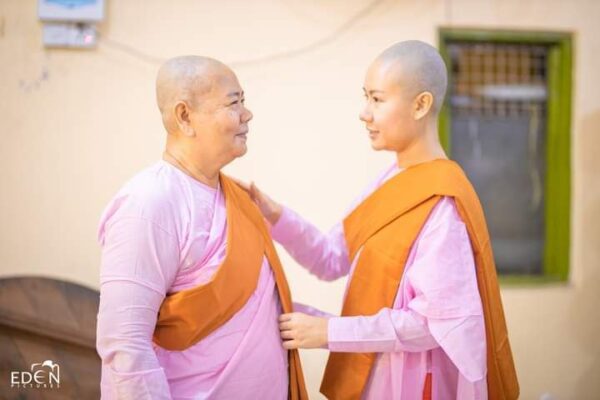 “ဖခင္ႀကီး ရာသက္ပန္ထြက္ခြာသြားျခင္း ၁ႏွစ္ျပည့္အလႉလုပ္ၿပီး ေနာက္ရက္မွာ ေမႀကီးနဲ႔အတူ ေကာင္းမႈကုသိုလ္ေတြ ပိုလုပ္ႏိုင္ဖို႔ စဥ္းစားၿပီး သီလရွင္ ဝတ္ျဖစ္ခဲ့တာပါ” လို႔သူမလက္ရွိအသုံးျပဳေနတဲ့ လူမႈကြန္ယက္စာမ်က္ႏွာမွာ ေရးသားေဖာ္ျပခဲ့ပါတယ္။